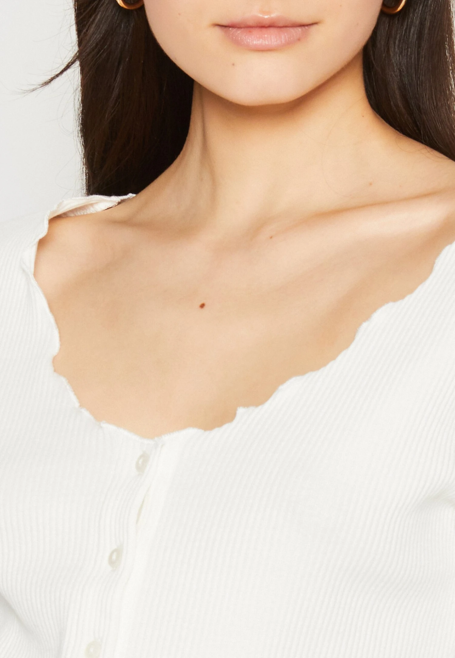 | Halslijn | Diepe ronde hals |